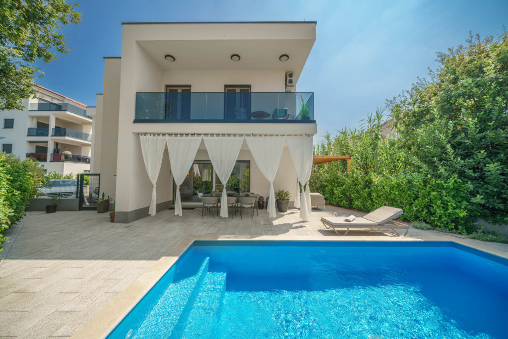 Die Villa in Srima bei Vodice vereint moderne Eleganz, strandnahe Lage und die Ruhe eines charmanten Küstenorts – ideal für einen entspannten Urlaub an der Adria.