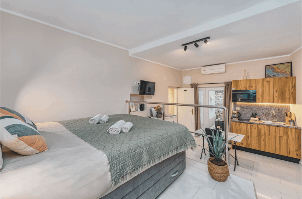 Die Apartments in Nin, bieten eine herrvoragende Lage um die charmante Altstadt, die heilenden Schlammbäder und die wunderschönen Sandstrände zu erleben.